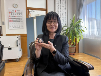 大分県立杵築高校(杵築市本庄)の生徒が足立史歩校長をモデルにしたフィギュアを3Dプリンターで制作し、2月10日、校長に直接手渡した。