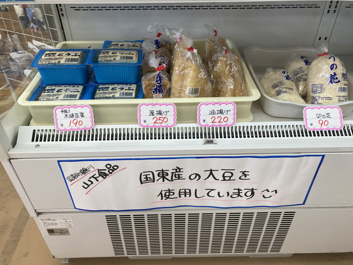 山下食品は30年以上にわたり豆腐の製造を続けており、地元で親しまれている。今回取り扱いを始めた手作り木綿豆腐(190円)は、市販品に比べて硬めで崩れにくいのが特徴。同店ではこのほか、厚揚げ(250円)、油揚げ(220円)、卯の花(90円)も販売する。