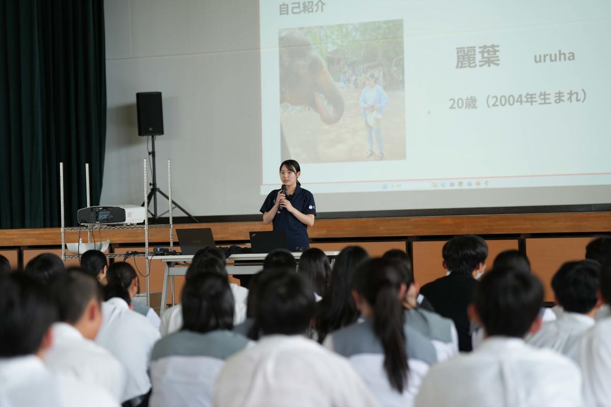 麗葉さんは、生徒たちに「最初から山の頂上を目指すのではない。人との出会いや経験のなかで、自分の道がみえてくる」と語りかけた。