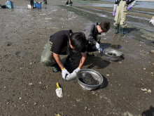 杵築高校(大分県杵築市本庄2379)の2年生6人が11月3日、杵築市民らと共に守江湾でフィールドワークを行い、アサリ資源の回復に向けた活動を体験した。
