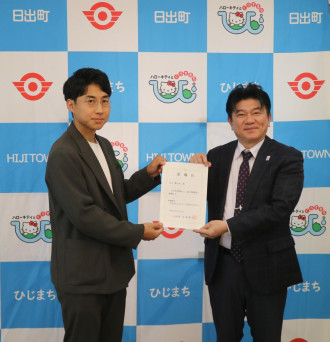 日出町役場で10月31日、地域おこし協力隊の委嘱状交付式が行われ、杵築市出身の木元慎之助さんが新たに任命された。