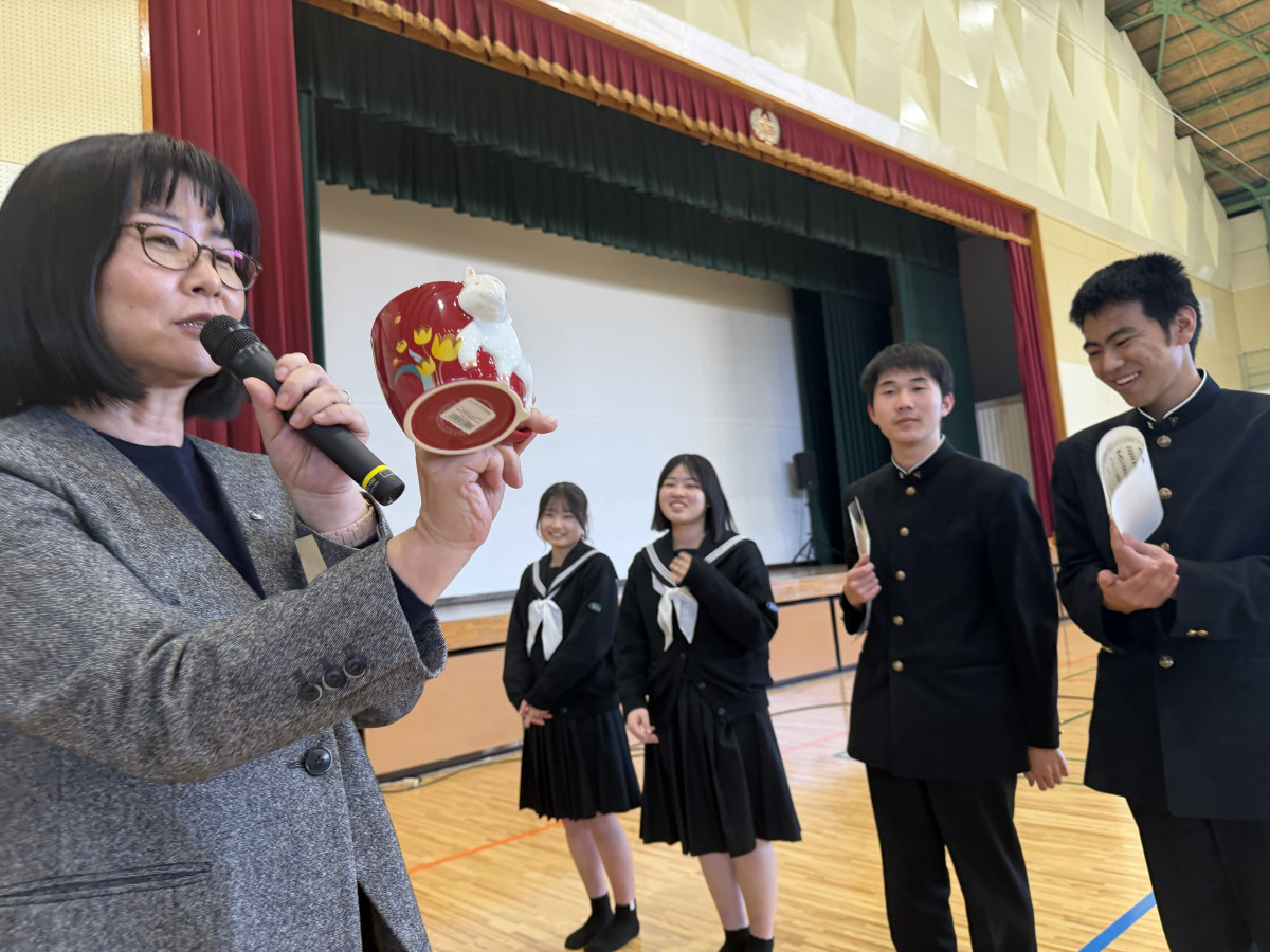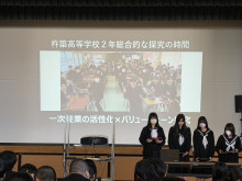 大分県立杵築高校(住所)で1月28日、「総合的な探究の時間」の成果発表会が開かれ、2年生がこれまでの学習成果を発表した。