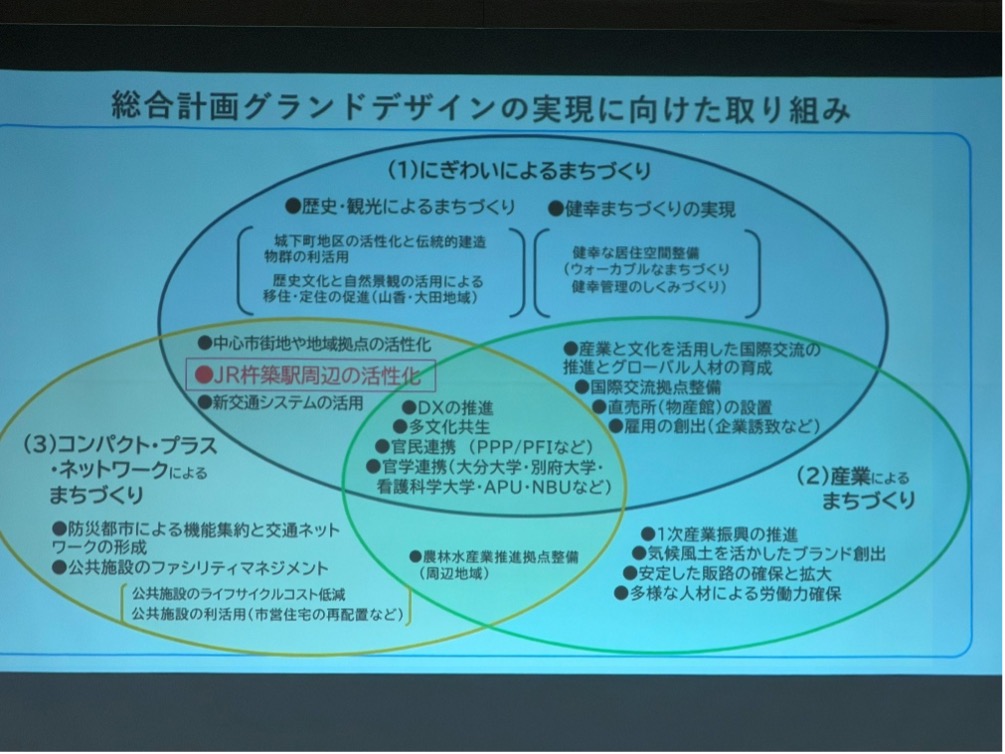 JR杵築駅周辺の活性化をテーマにしたシンポジウムが2月11日、杵築市健康福祉センター(杵築市猪尾)多目的ホールで開かれ、定員300人を超える市民が参加した。